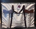 CORNHOLE SET: Includes two XL size 4 ft x 2 ft collapsible cornhole boards, 8 bean bags, carrying case and rules